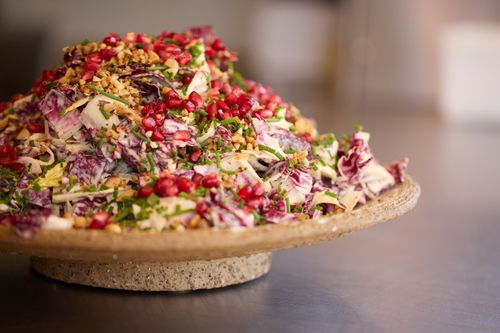 Heerlijke hapjes, gevolgd door een fijn assortiment kleine voorgerechtjes (food sharing) die werden geserveerd in prachtige keramieken schalen en daarna een hoofdgerecht om duimen en vingers af te likken. Een echte aanrader!